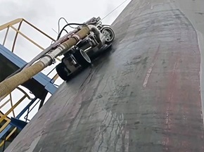 立式儲(chǔ)油罐是儲(chǔ)存油品的容器,基本上是采用吊籃或搭腳手架,由人工持手動(dòng)工具除銹,或噴砂除銹。德高潔RC360W-MG280儲(chǔ)罐除銹機(jī)器人,采用爬壁機(jī)器人搭載除銹清洗器作業(yè),適用于大面積鋼制表面除銹工作,可同時(shí)解決行走、附壁、射流三個(gè)問(wèn)題。[查看詳情]
