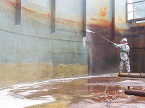 儲油罐的罐底區(qū)、底部的罐壁與油析水的接觸較大,油罐的底部會不同程度的被滯留油析水腐蝕。由于油的種類不同,油品的析出水就可能會呈現(xiàn)酸性或堿性不等。在儲油罐的防腐措施中, 罐體金屬表面的清理工作是最重要的環(huán)節(jié)之一,罐體表面的清潔不僅能去除表面的腐蝕、銹蝕、老化漆層、也同時影響涂層表面的附著力。目前,國內較為先進的清理工藝為高壓水射流清洗工藝。[查看詳情]