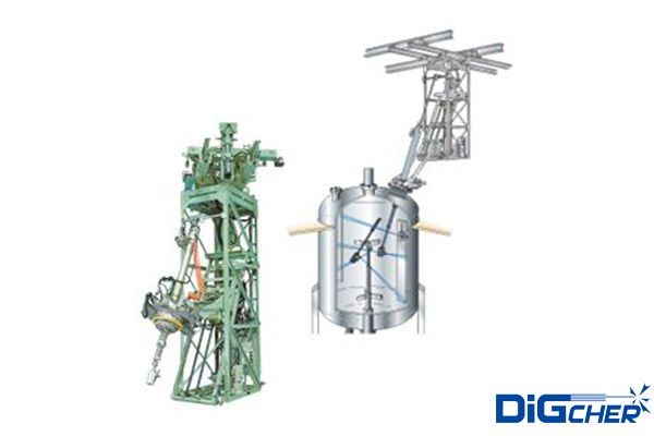 德高潔自動化制藥反應(yīng)釜清洗系統(tǒng)是利用高壓水射流的動能將反應(yīng)釜內(nèi)壁及攪拌器表面上的堅硬垢物擊碎,從而剝離并清除掉。三維自動旋轉(zhuǎn)噴頭伸縮機(jī)構(gòu)安裝在反應(yīng)釜入孔上,伸縮桿伸進(jìn)反應(yīng)釜內(nèi),伸縮機(jī)構(gòu)可采用手動、電動、液壓等控制,使伸縮桿在反應(yīng)釜內(nèi)伸縮和沿反應(yīng)釜內(nèi)壁周圍方向移動,伸縮桿在移動中可以避開反應(yīng)釜內(nèi)的障礙物。根據(jù)具體實(shí)際情況可選用2孔或4孔三維自動旋轉(zhuǎn)噴頭,當(dāng)三維自動旋轉(zhuǎn)噴頭水平旋轉(zhuǎn)時,水射流形成的旋轉(zhuǎn)力矩帶動噴嘴在垂直面內(nèi)旋轉(zhuǎn)。